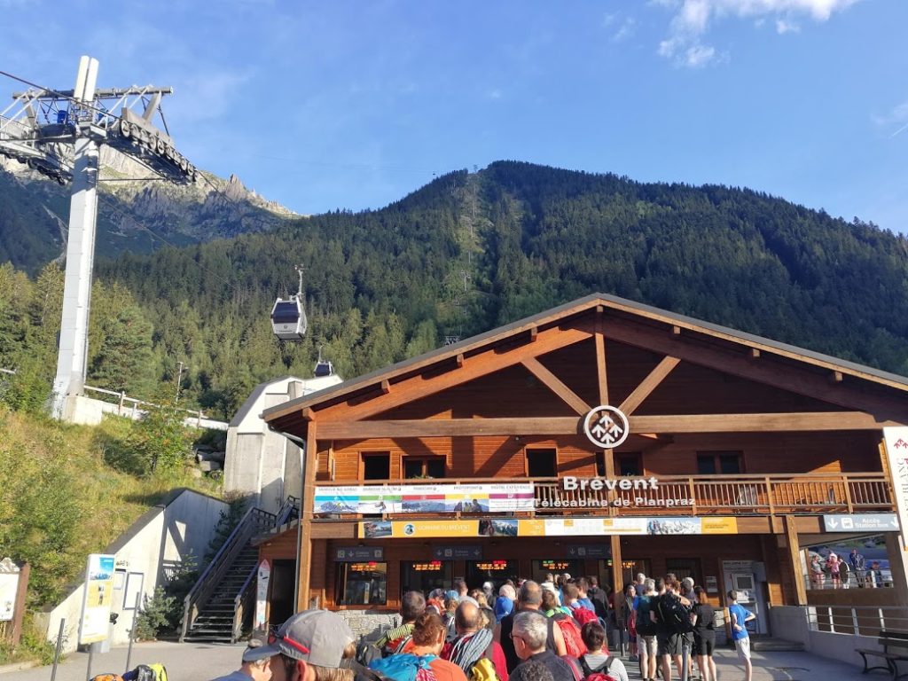 Op het programma: met de kabelbaan van Brévent naar Planpraz op een hoogte van 2000 meter (waarmee we de verticale kilometer van maandag in 10 minuten kunnen afleggen) en te voet verder naar Lac Cornu