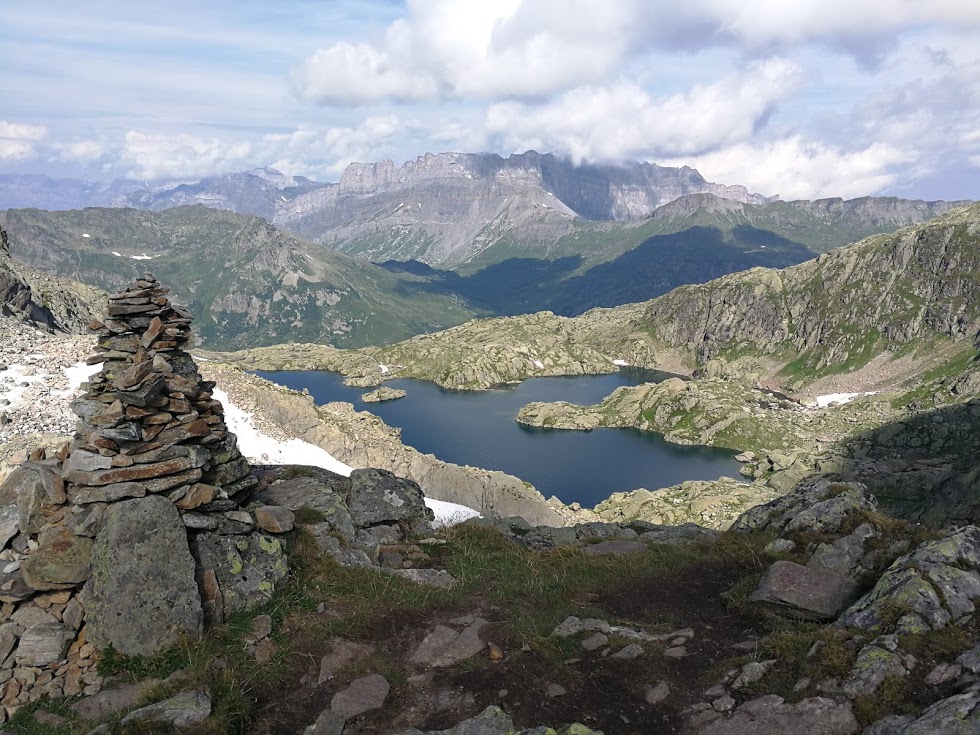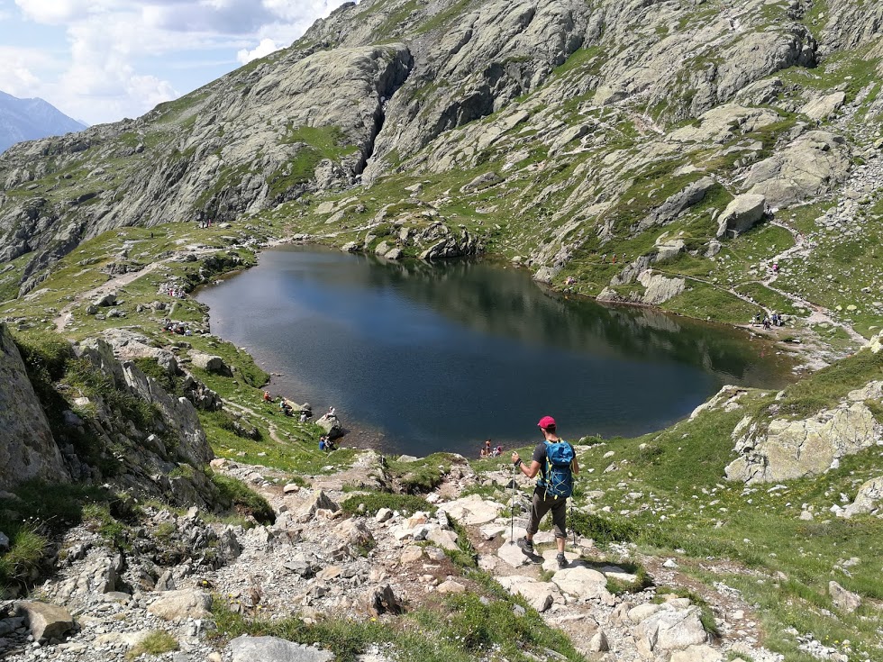 We maken van dit prachtige landschap gebruik om te picknicken. Vlak voor we weer afdalen, geïntrigeerd door andere wandelaars, gaan we om het meer heen om een tweede, nog mooier meer te ontdekken