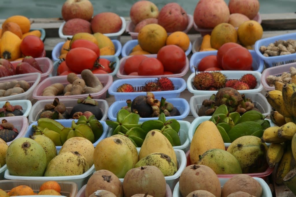 De plaatselijke bevolking maakt van de gelegenheid gebruik om vanaf hun boten fruit te verkopen aan toeristen. Als u wilt, kan de verkoopster het fruit voor u schillen, vooral mango’s, carambolas… De prijs is aan de klant zijn hoofd, dus onderhandel een beetje 😀