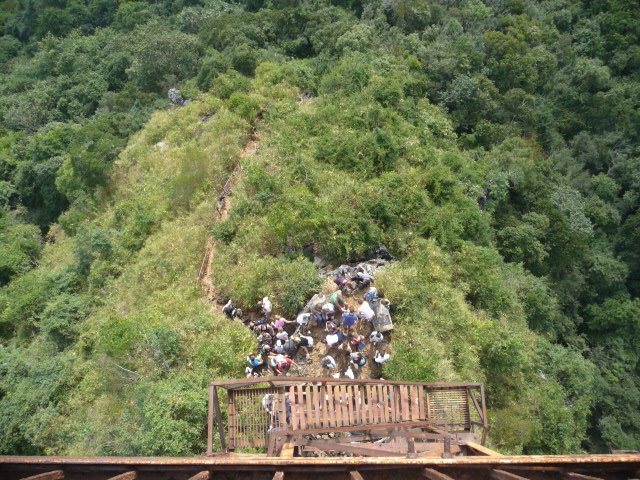 De volgende dag nemen we een bus om naar een andere haven te gaan. Maar omdat het vannacht te hard heeft geregend, is een deel van de weg overstroomd: onmogelijk om met de bus te gaan