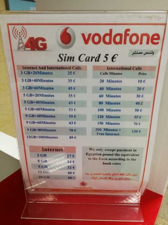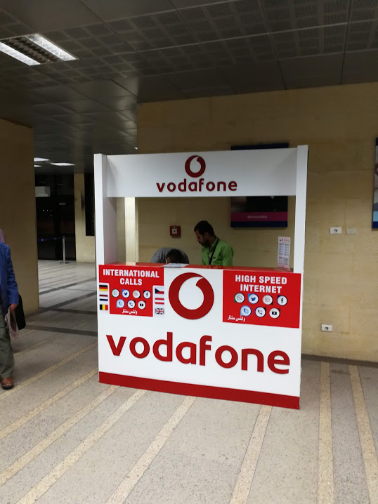 In ons geval (Luxor luchthaven), is het heel eenvoudig, aangezien er een Vodafone stand aanwezig is in het gebied waar we onze bagage ophalen.