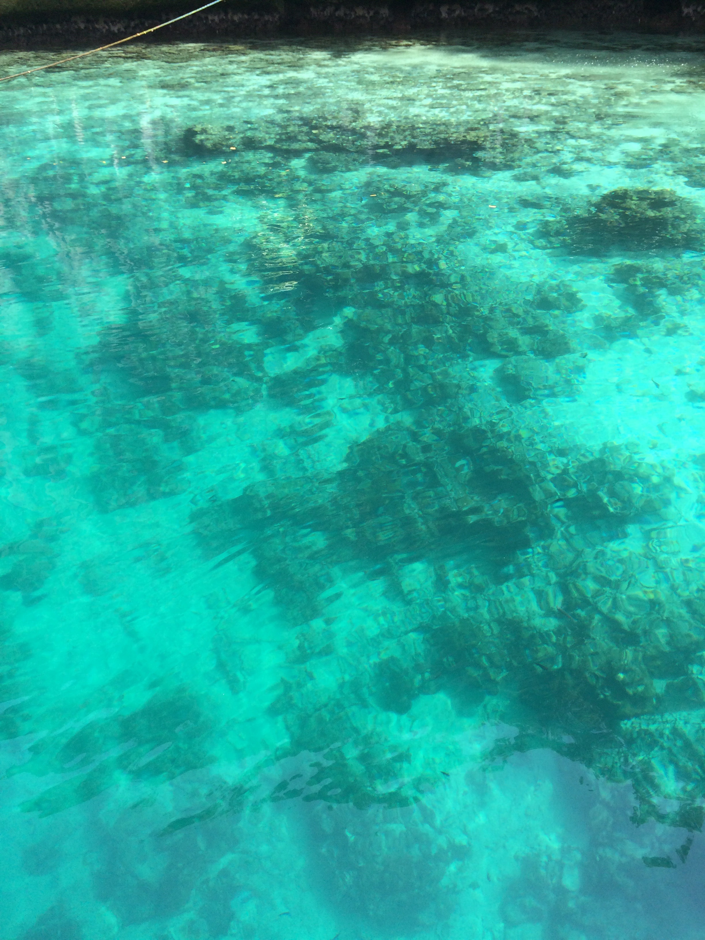 De eerste lagune is gevuld met zeewater, terwijl de tweede gevuld is met zoet water, gemengd met 30% zeewater. Als u bij de ingang van de tweede lagune zwemt, is het water soms warm (zeewater), soms koud (zoet water). Er zijn veel vissen in de eerste lagune, maar niet in de tweede