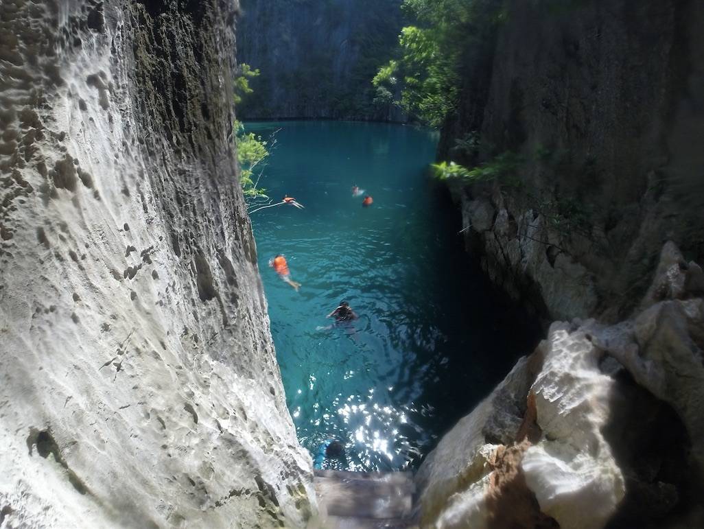 Allereerst, de Twin Lagoon. Twee lagunes zijn met elkaar verbonden via een klein gat onder een enorme rots. Als het eb is, kun je door dit gat naar de andere lagune, anders neem je de trap en heb je een prachtig uitzicht zoals dit op de 2e lagune