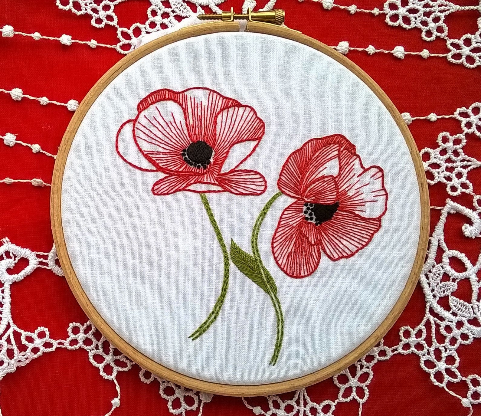 Deze kit bevat al het gereedschap (canvas, trommel, naald, borduurgarens) dat nodig is om dit prachtige ontwerp te maken. Je kunt het (met de trommel) aan de muur hangen.