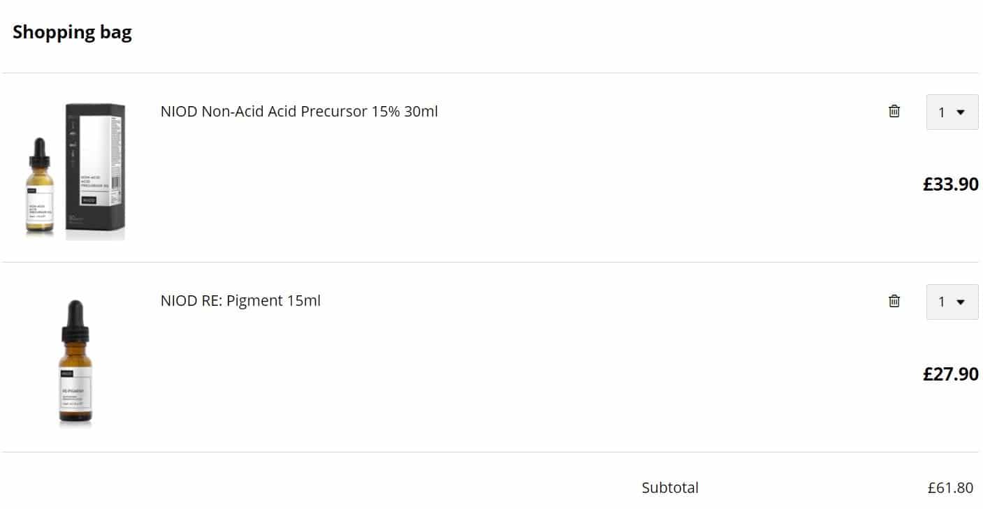 Voorbeeld: op de Engelse site is het mandje £61,8 of €67,6 met de huidige koers