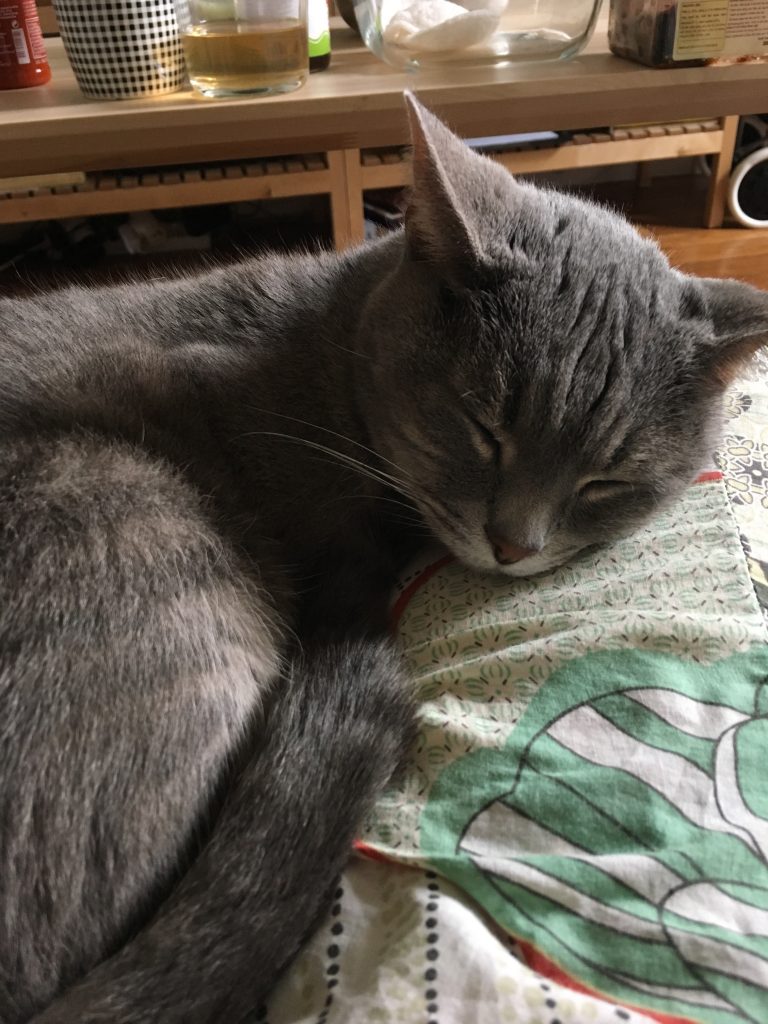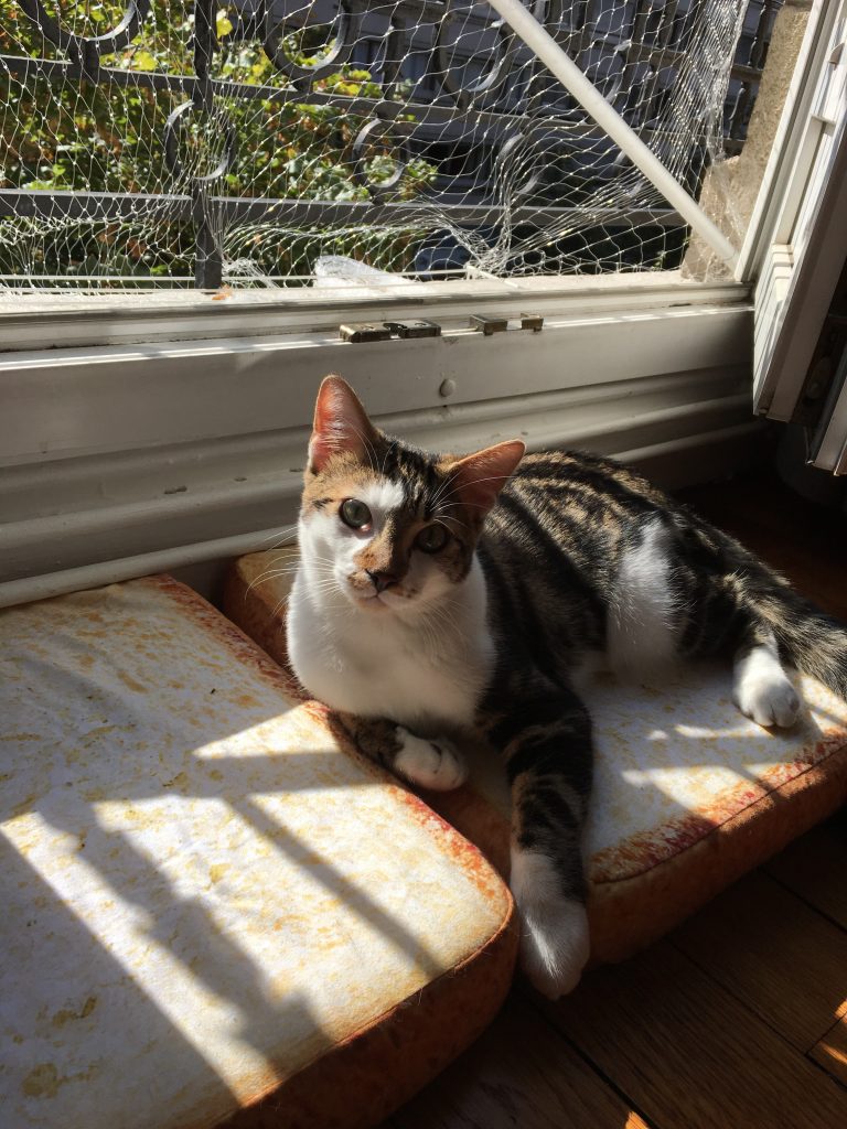 Na 3 dagen in de hel, logeer ik eindelijk bij mijn zus, die voor 2 weken op vakantie gaat. Ik ben verantwoordelijk voor de zorg van twee katten: Rosalie (die eigenlijk mijn kat is) en Sushi. Laten we 2 weken knuffelen en spinnen met deze twee bolletjes haar, terwijl JB zijn tijd doorbrengt in het Zuiden met zijn grootmoeder