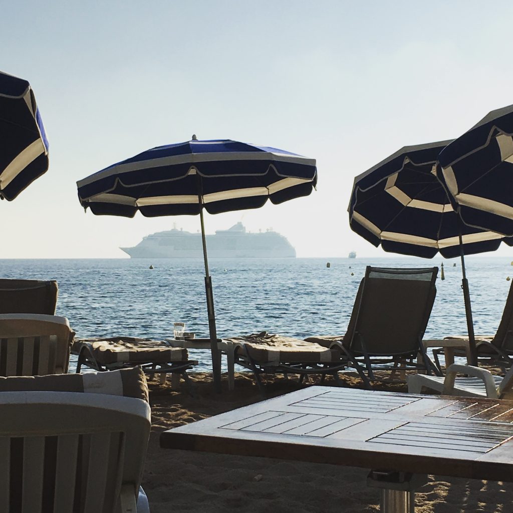 …voor een mojito (toch 15€), met je voeten in het zand op het Croisette strand