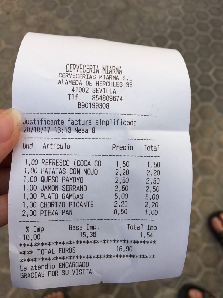 Ernaast ligt de Hercules Promenade, vol met leuke bars, cafés en restaurants. Mijn airbnb eigenaar vertelt me dat deze plek meer lokaal is dan andere plaatsen in Sevilla. Hij heeft gelijk, want we hebben heel veel (en heel goed) kunnen eten voor slechts 17€