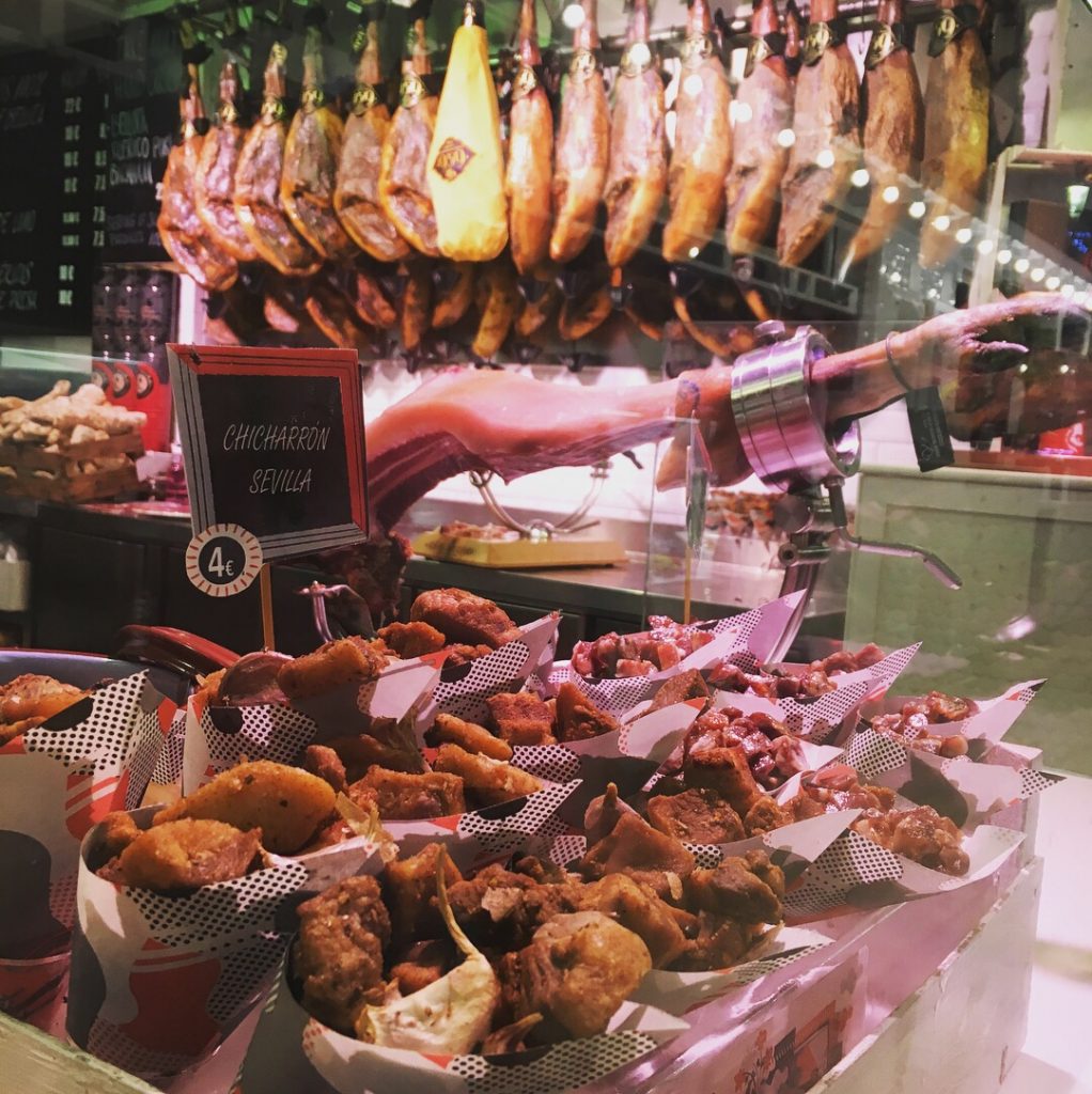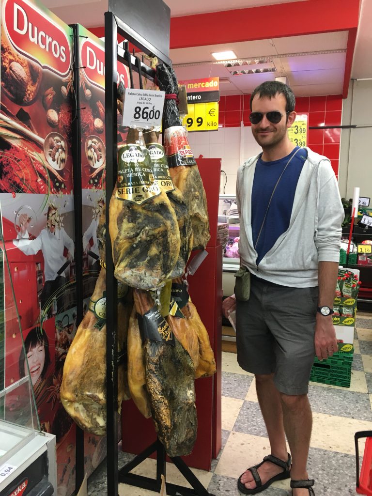 Het eten is hier zo lekker dat zelfs als je geen honger hebt, je de hele tijd wilt eten. In de supermarkten vind je veel jamon serrano, kaas, zelfs bevroren croquetas😀