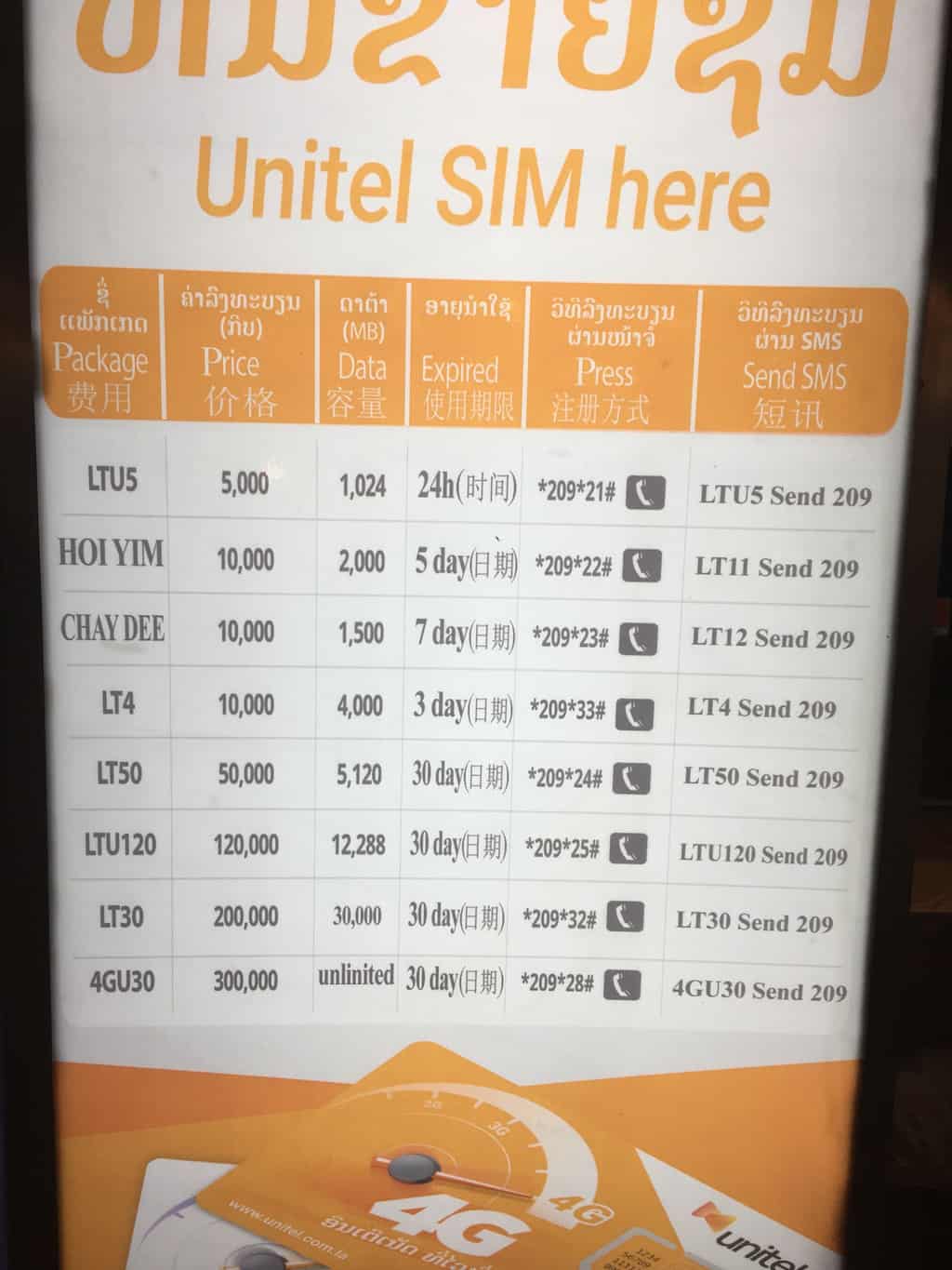 Het is heel goed mogelijk om vanuit Luang Prabang te werken met een 3G-verbinding. Verwacht echter geen waanzinnige snelheid. En u zal ongeveer 20€/maand moeten betalen voor 30GB/maand of 30€/maand voor onbeperkte 3G