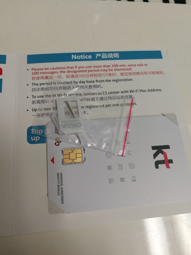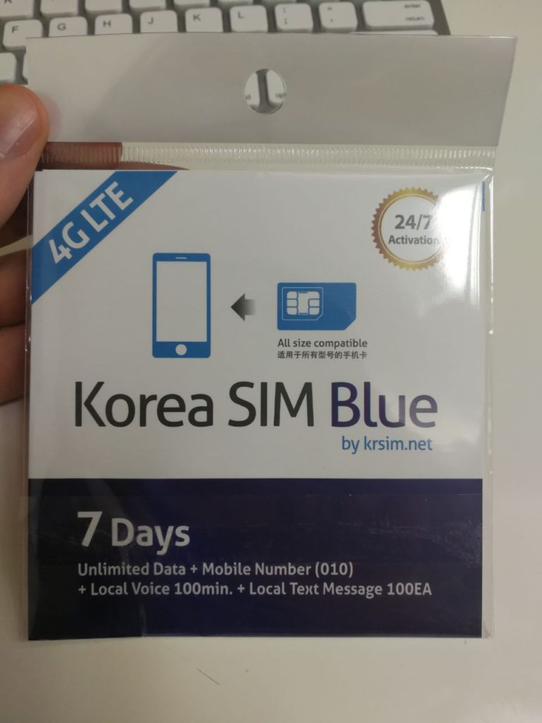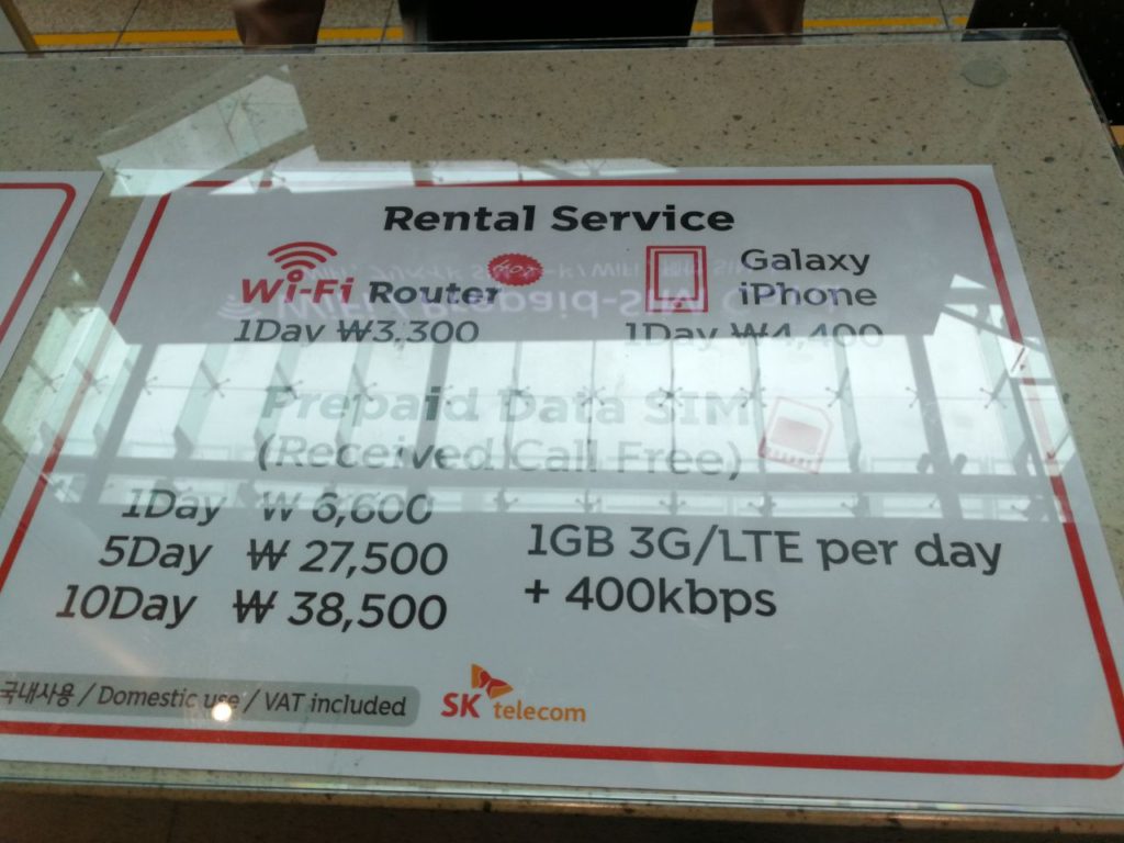 Na de 30 dagen geldigheid van onze SIM, keerden we terug naar dezelfde Seven Eleven in Myeongdong om dezelfde SIM te kopen (1 GB data voor 30 dagen voor 34 900 won). De verkoper vertelde ons dat dit aanbod niet meer bestaat. Hij kon ons alleen een zeer duur aanbod doen: 36 000 won voor een SIM-kaart die 7 dagen geldig is met onbeperkte data (verminderde snelheid na 10 GB)