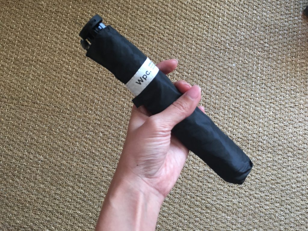 Toen ik in Japan aan het winkelen was, ontdekte ik een ultralichte paraplu die in Japan is gemaakt. Hij weegt maar 70 gram! Dat is het gewicht van 5 lege colablikjes. Er staat op “super air light : verbazingwekkend licht gewicht paraplu met verbeterde draagbaarheid zal uw stress verlichten”.